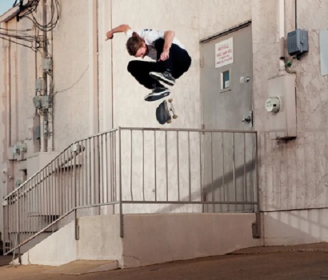 二者結合后,就是人們經常看到的滑板動作,滑板在空氣中帶動跳躍,好象在鞋里“粘”上了一層膠一樣“粘”滑板!